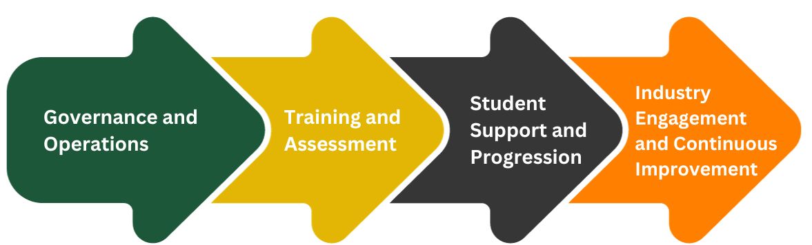 - Governance and Administration: Implementing effective governance structures and administrative practices to support quality training delivery.