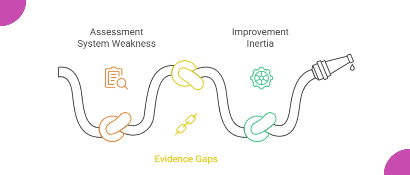 Weak assessment tools/mapping, inadequate assessor judgements, trainer currency gaps, tokenistic industry engagement, data/reporting errors, and a continuous improvement loop that doesn’t close.